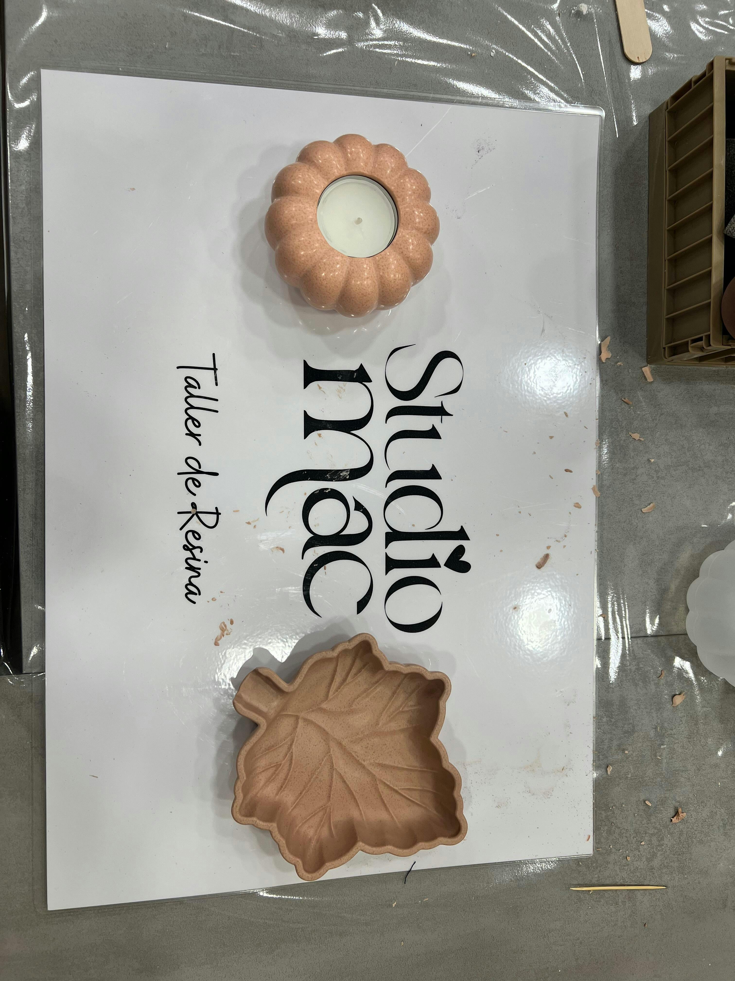 En este taller te enseñaremos a crear una bandeja porta accesorios y un porta velas con resina ecológica desde cero.